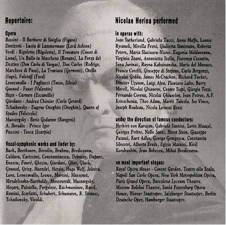 Romanian baritone, b. 1927 Biographical notes: He was born Nicolae Herle in Bucharest and studied at the Bucharest Conservatory with Aurelius